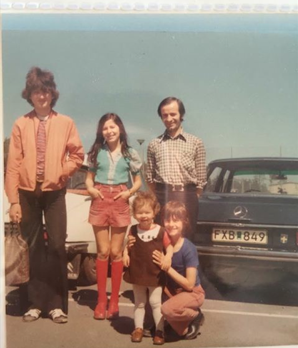 Här om dagen hittade ett gammalt foto tillbaka till mig. Ett foto som jag aldrig har sett men som uppenbarligen har funnits i min killkompis fotoalbum. Nu har det efter typ 40 år tittar fram och nått mig. Tack vare våra numera vuxna barn har det förvandlats från analogt till digitalt. De har letat bevis på vår vänskap och grävt fram fotot. Det nya knyter ihop det gamla. Fick mig ett gott skratt av att se denna 70-talsuppställning. Kompisen, hans lillasyster, min lillebror, min supersmala pappa som ingen kan känna igen idag och så 12-åriga gängliga brokiga lilla jag. I puffärm, shorts, knästrumpor och träskor såklart. Mercan i bakgrunden är naturligtvis vår. Vad vore en jugge utan Merca på 70-talet. Så fruktansvärt roligt att se dåtid möta nutid! Skärmavbild 2015-04-14 kl. 17.57.14