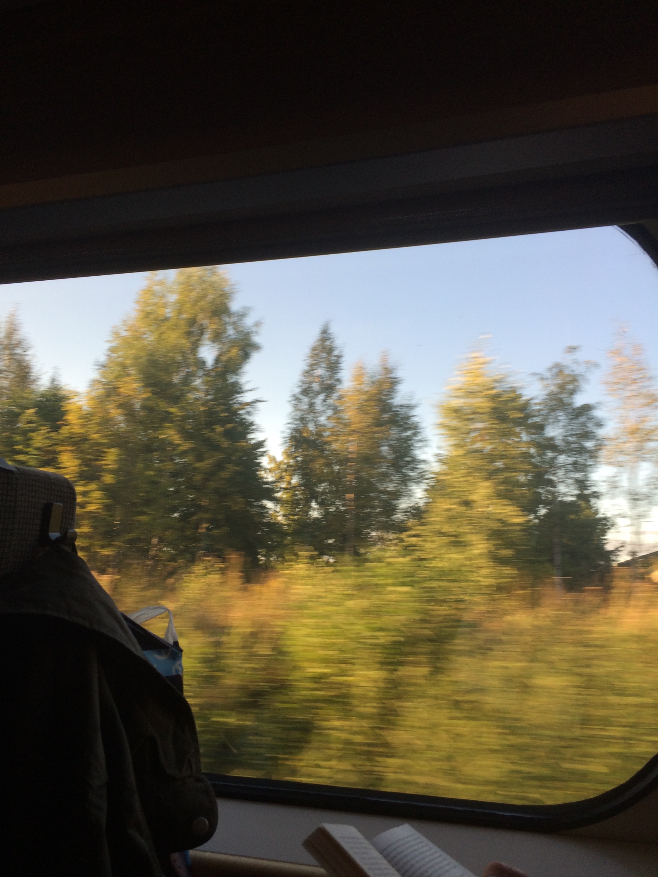 Åker baklänges genom öppna landskap. På tåg är det möjligt. Glömde ta med mig en bok så jag läser nyhetsapparna, scrollar igenom Facebook- och Twitterflödet. Vet inte hur klokt det är egentligen. Så många anledningar till att bli upprörd eller känna hopplöshet. Inte många ämnen som får en att må bra. Kanske skulle man som en av mina kloka jobbkollegor kasta ut tv:n och sluta läsa nyheter helt. Bättre att leva i okunskap om omvärldens händelser än att matas ihjäl med allt elände som vi ändå inte kan lösa. Eller kan vi?