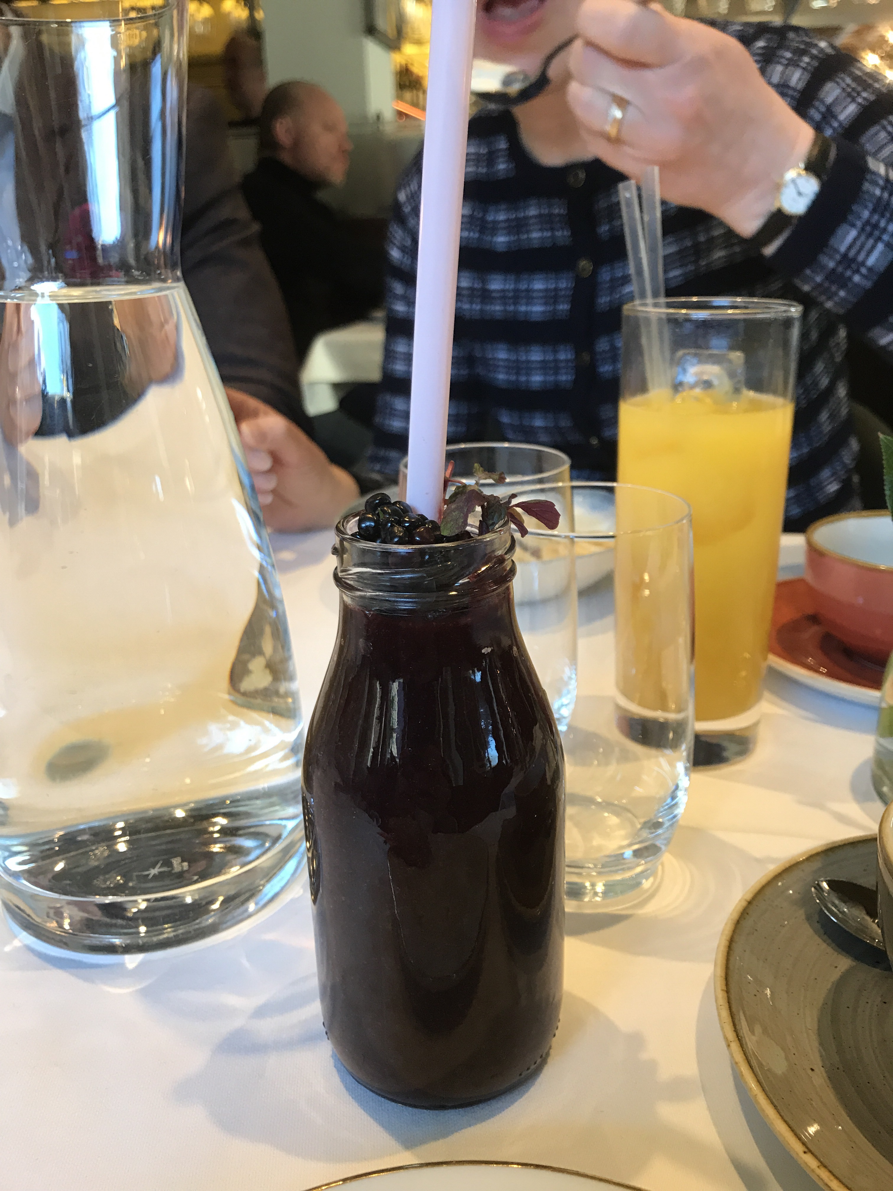 Varje fredag borde vara så här skön som denna. Den började med jobbfrukost på Strandvägen 1, något som min nuvarande grupp praktiserar med jämna mellanrum. Ett annat sätt att teama ihop sig. Förutom att frukosten var grymt god så lyckades jag med valet av en blå smoothie utmana min för dagen vita blus. Hur jag trots sugrör och flaska skvätte ned den med två små blåbärsfläckar övergår mitt förnuft. Klant är enda förklaringen. Fick låsa in mig på toa med en flaska diskmedel i hopp om att få bort så mycket av det blåa som möjligt. Lyckades ganska bra.