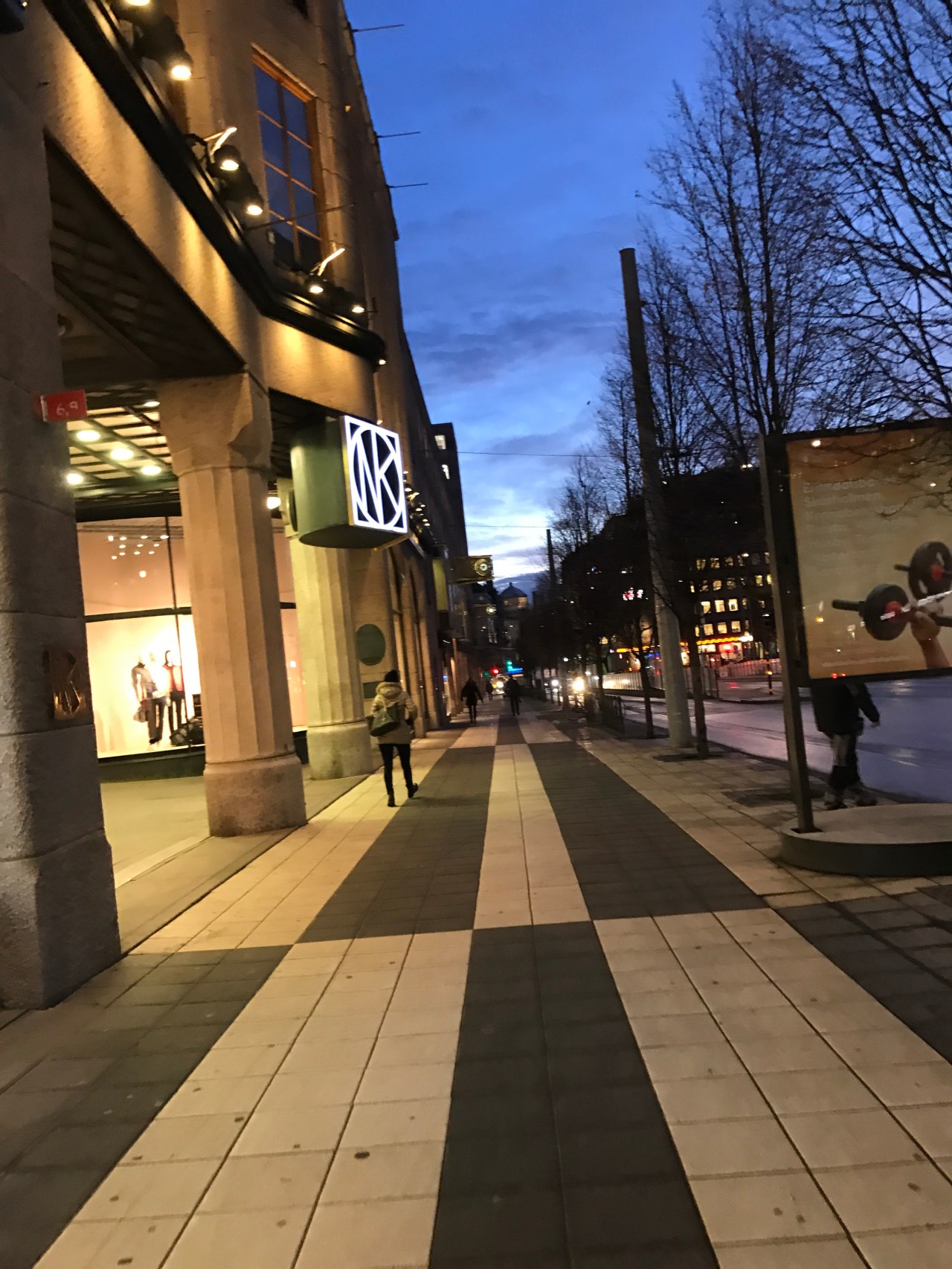 Tillbaka i realiteten äter jag en banan. Klär mig och går ut i kylan. In på bussen som faktiskt kommer och för ovanlighetens skull inte alls är överfull. Den rullar smidigt förbi de långa bilköerna. När vi anländer till Gullmars passar jag på att köpa nytt månadskort för att därefter ansluta mig till det människohav av återvända sportlovsfirare som förflyttar sig ned för trappan till tunnelbanan. Stiger på tåget som förblir stillastående. Det kan inte åka vidare. I utropet säger de att det är på grund av ett sjukdomsfall vid Medborgarplatsen. Vi väntar. Som i en honör till den sjuke. Mina tankar går till personen som var på väg någonstans denna tidiga måndag morgon, förmodligen arbetet, för att sedan det första hen gör falla ihop på tunnelbanan. Ambulanssirenerna hörs ända upp till oss. Någon minut senare rullar vi igen. Stiger av och korsar som vanligt plattan. På vägen passerar jag, som det flesta andra dagar, uteliggaren med Bajenhalsduk. Han sitter allt som oftast på samma ställe. Har hört honom hosta rejält, och de dagar han inte varit där, funderat om någonting kan ha hänt honom. Denna morgon möts våra blickar. Innan jag passerar vill jag ropa ut ”Heja Bajen!” men tror inte att det skulle göra någon skillnad. En dag kanske jag stannar till och ger honom en slant bara för halsdukens skull. Varför sitter han inte på Söder tänker jag men i samma ögonblick inser jag att det förmodligen finns många fler uteliggare med Bajenhalsduk där än här. Fortsätter vidare in under tak där en dekoratör sitter i H&M’s skyltfönstret och skrapar bort dekaler från glasrutan. Dekalerna verkar sitter riktigt hårt och man kan se att det krävs mycket kraft och tålamod för att få ned dem. Får flashbacks till tiden då jag producerade material till skyltfönster och ville undvika samma besvär. Några meter bort ser jag städaren som sköter om denna yta. Ser honom dagligen. Även våra blickar möts och jag vill säga hej men gör det inte. Känner han igen just mig av alla de mörka figurer som springer förbi här varje morgon eller är vi bara en grå massa för honom? Vet ej. Kanske hejar jag nästa gång. Passerar förbi NK’s skyltfönster som skrudar om idag, går över gatan utan att behöva vänta på grön gubbe, rundar hörnet vid McDonalds och passerar in genom porten. Någon trappa upp är jag framme. En ny vecka har börjat.
