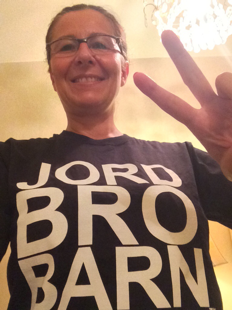 Såg den på Dino och ville ha en direkt. Är man ett så är man – ett Jordbrobarn. Eftersom jag är ett ville jag ha en egen. Nu har jag fått en alldeles egen av Dino! Tack Dino för att du är ett riktigt Jordbrobarn och för att du känner igen ett när du ser det! Stolt och glad över att vara ett!