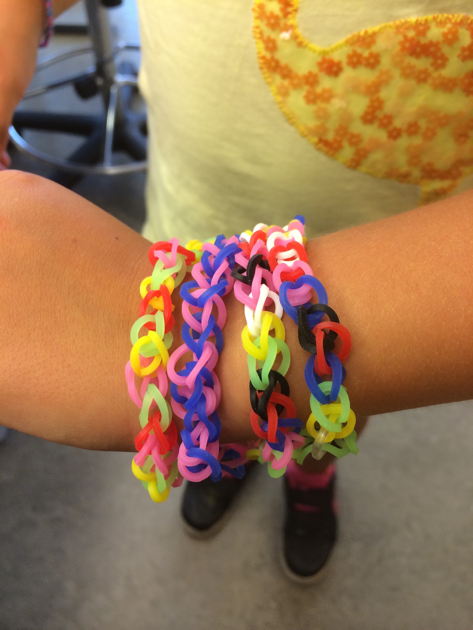 Har också haft en ny liten bordsgranne på besök idag. Hon följde med pappa till jobbet och jag förärades hennes sällskap. Smart och klurig liten tjej som producerade fina armband på löpande band. Alla fick ett. Mamma, pappa, lillebror, hon själv…. Om inget annat dyker upp så kanske jag kan producera lite armband till hela arbetsgruppen nästa vecka 🙂 I värsta fall kan jag bläddra igenom den Se&Hör som John hade med sig från gårdagens event.