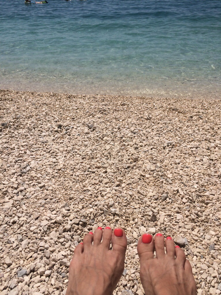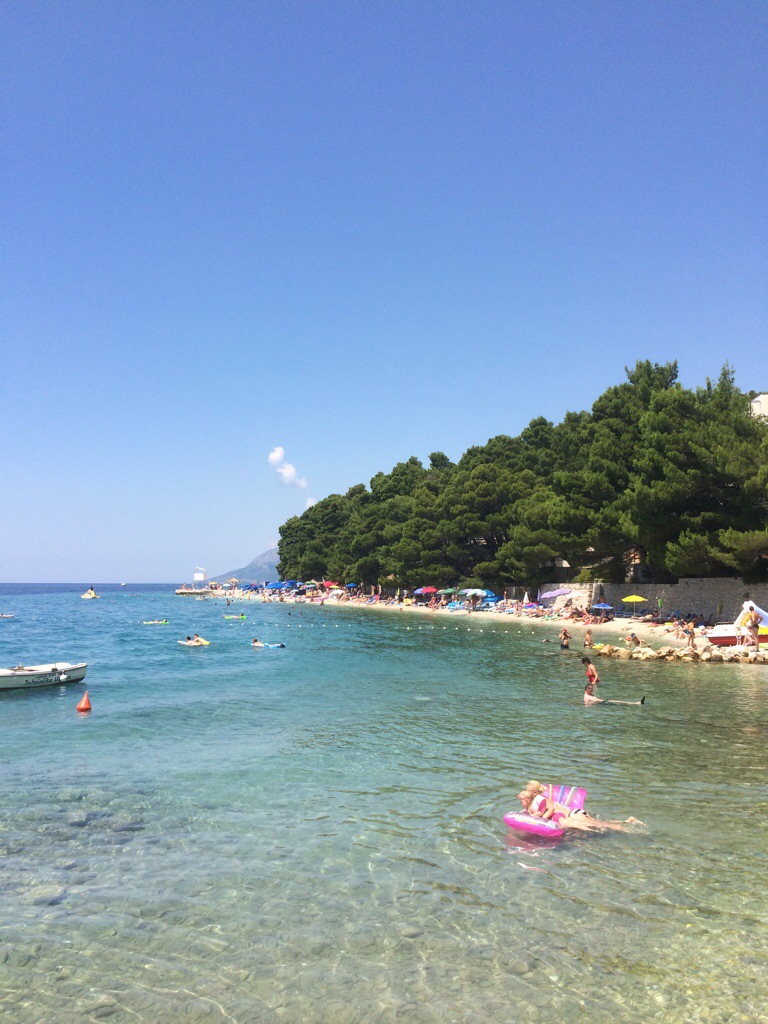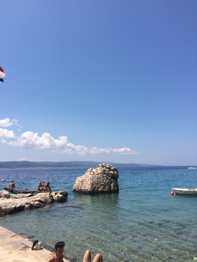 Ordningen är återställd! Det fina vädret är tillbaka och nu kan vi klaga på värmen istället för regnet som jagade iväg oss från stranden igår. Som tur är kan vi när huden bränns och huvudet kokar över svalka av oss i det härliga havet. Allt detta får mig att verkligen inse hur svårt det är att göra människan nöjd. Vi hittar alltid något att beklaga oss över. Sällan helt nöjda. Med tanke på det känns det bra att vi tycks ha hittat rätt ställe att hänga på ”Južnjačka utjeha” eller ”Southern comfort” (får inte till en bra svensk översättning. ”Sydländsk tröst” låter helt fel och får tankarna att gå åt ett ekivokt håll). Här finns allt som vi sydlänningar behöver för att känna oss nöjda. Ett strandhäng med god dricka och en härlig vy. Mer behövs inte. Bis morgen!